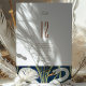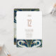 Diese Tischnummer-Karte ist ein Meisterwerk der Art-Déco-Raffinesse und zeigt die ikonische Eleganz des Set der Schwäne vor einer eindrucksvollen marineblauen Kulisse mit herrlichen Golddetails. Das Design besteht aus einem Schwanenpaar in einem Spiegelbild, dessen weiße Federn mit Gold umrissen sind und einen atemberaubenden Kontrast zum dunklen, reichen Hintergrund schaffen. Oberhalb der ruhigen Schwäne wird die Tischnummer in einem großen, eleganten Schriftart hervorgehoben, der das Gesamtbild ergänzt. Die Karte ist mit einer Gästeliste in einer passenden Schrift fertig und sorgt für eine nahtlose Integration in das raffinierte und stilvolle Thema Ihrer Hochzeit.