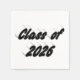 Graduation paper napkin with Class of 2026 in 3D black text. Available in several styles and sizes.