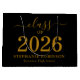 Stylish elegant custom graduation gift bag! Celebrate the graduate's accomplishment in style with this trendy graduation gift bag. Design features "Class of 2026" in gold font on a classic black background. Personalize this product by adding the name and school name. Easy to customize. Congratulations!