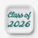 Graduation paper plate with Class of 2026 in 3D green text. Available in several styles and sizes.