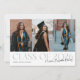 Modern and elegant graduation announcement photo card featuring 3 photos on the front and 1 on the back. The text says "Class of 2026" with your name in script font overlapping. Add the graduate's name, information, and message to personalize this card.