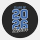Class Of 2026 Senior Blue Graduation Graduate Runder Aufkleber