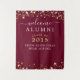 Erstellen Sie eine Wiedersehen oder alle Begrüßungszeichen, Party Dekoration oder Foto op Hintergrund mit dem Titel WELCOME ALUMNI in einer modernen handgeschriebenen Schrift Typografie, editierbaren Jahrgang und Name Ihrer Schule, Uni oder Universität oder anderen benutzerdefinierten Text mit goldenen Sternen auf einem bearbeitbaren bordeauxfarbenen Hintergrund, den Sie in Ihre Schulfarbe ändern können. Für zukünftige Wiedersehen bestimmt. ÄNDERUNGEN: Ändern Sie die Hintergrundfarbe oder den Stil, die Größe, die Farbe, den Abstand und die Platzierung des Schriftartes in EDIT. TAPESTRY OPTIONS: Das Beispiel wird in der Größe von 50x60" angezeigt. Andere Größen sind auf der Bestellseite verfügbar. HILFE: Für Hilfe bei der Modifikation/Personalisierung des Designs, bei Farbänderungen, bei der Größenänderung, bei der Übertragung des Designs auf ein anderes Produkt oder wenn Sie die Dinge koordinieren möchten, wenden Sie sich bitte an den Designer, BEVOR Sie über Zazzle Chat oder makeitaboutyoustore@gmail.com bestellen.