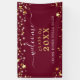 Erstellen Sie ein Wiedersehen Begrüßungsbannerzeichen mit dem Titel WELCOME in einer modernen handgeschriebenen Schrift-Typografie, Jahrgang und Name Ihrer Schule, Uni oder Universität oder anderen benutzerdefinierten Text, der mit goldenen Sternen und Streichleuchten auf einem editierbaren burgundischen Maronhintergrund versehen ist, den Sie in Ihre Schulfarbe ändern können. ÄNDERUNGEN: Ändern Sie die Hintergrundfarbe oder den Stil, die Größe, die Farbe, den Abstand und die Platzierung des Schriftartes in EDIT. BANNEROPTIONEN: Das Muster wird in 3x5' Größe angezeigt; andere Größen sind auf der Bestellseite verfügbar. Es besteht die Möglichkeit, das Design auf eine Schaumplatte, ein Poster, einen Tapisserie oder ein anderes Produkt zu übertragen oder es vom Designer in eine DIGITALE DOWNLOAD-Datei zum Drucken vor Ort zu konvertieren. HILFE: Für Hilfe bei der Modifikation/Personalisierung des Designs, bei Farbänderungen, bei der Größenänderung, bei der Übertragung des Designs auf ein anderes Produkt oder wenn Sie die Dinge koordinieren möchten, wenden Sie sich bitte an den Designer, BEVOR Sie über Zazzle Chat oder makeitaboutyoustore@gmail.com bestellen.