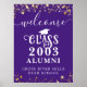 Herzlich willkommen auf der Wiedersehen der Highschool oder Uni (editierbar für jedes Jahr Wiedersehen) mit diesem farbigen Plakatzeichen, das goldene Sterne, Streichlichter, handgeschriebene Schrift und dekorative Typografie enthält und mit Ihrem Schulnamen personalisiert ist und das Unterrichtsjahr in Ihrer Farbwahl schließe (mit weißem Text und Grafiken auf einem bearbeitbaren lila Hintergrund). Die Farben können auf die Schulfarben oder auf die Party-Themenfarben abgestimmt werden. POSTER DRUCKOPTIONEN: Das Muster wird in einer Größe von 18x24" angezeigt. Andere Größen sind verfügbar, oder das Design kann auf eine Tafel, ein Banner, eine Tapisserie-Kulisse übertragen oder als digitale Datei für den lokalen Druck auf der Bestellseite heruntergeladen werden. HILFE: Wenn Sie Hilfe bei der Änderung oder Personalisierung des Designs, der Farbänderung, der Größenänderung, der Übertragung des Designs auf ein anderes Produkt oder der Konvertierung in eine Download-Datei benötigen, wenden Sie sich bitte an den Designer, BEVOR er die Bestellung über die Registerkarte Zazzle Chat MESSAGE unten durchführen kann, oder senden Sie eine E-Mail an makeitaboutyoustore@gmail.com.