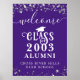 Willkommen Alumni auf ihrer High School oder Uni Class Wiedersehen (editierbar für jedes Jahr Wiedersehen) mit diesem benutzerdefinierten Farbposter-Zeichen mit silbernen Sternen, Saitenleuchten, handgeschriebenen Skripten und dekorativen Typografie und personalisiert mit Ihrem Schulnamen und geschlossen Klassenjahr in Ihrer Farbwahl (mit weißem Text und Grafik auf einem bearbeitbaren lila Hintergrund). Die Farben können auf die Schulfarben oder auf die Party-Themenfarben abgestimmt werden. POSTER DRUCKOPTIONEN: Das Muster wird in einer Größe von 18x24" angezeigt. Andere Größen sind verfügbar, oder das Design kann auf eine Tafel, ein Banner, eine Tapisserie-Kulisse übertragen oder als digitale Datei für den lokalen Druck auf der Bestellseite heruntergeladen werden. HILFE: Wenn Sie Hilfe bei der Änderung oder Personalisierung des Designs, der Farbänderung, der Größenänderung, der Übertragung des Designs auf ein anderes Produkt oder der Konvertierung in eine Download-Datei benötigen, wenden Sie sich bitte an den Designer, BEVOR er die Bestellung über die Registerkarte Zazzle Chat MESSAGE unten durchführen kann, oder senden Sie eine E-Mail an makeitaboutyoustore@gmail.com.
