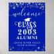 Herzlich willkommen auf der Wiedersehen der Highschool oder Uni (editierbar für jedes Jahr Wiedersehen) mit diesem farbigen Plakatzeichen, das silberne Sterne, Streichlichter, handgeschriebene Schrift und dekorative Typografie enthält und mit Ihrem Schulnamen personalisiert ist und das Jahr schließe, in dem Sie die Farben auswählen (mit weißem Text und Grafiken auf einem bearbeitbaren königsblauen Hintergrund). Die Farben können auf die Schulfarben oder auf die Party-Themenfarben abgestimmt werden. POSTER DRUCKOPTIONEN: Das Muster wird in einer Größe von 18x24" angezeigt. Andere Größen sind verfügbar, oder das Design kann auf eine Tafel, ein Banner, eine Tapisserie-Kulisse übertragen oder als digitale Datei für den lokalen Druck auf der Bestellseite heruntergeladen werden. HILFE: Wenn Sie Hilfe bei der Änderung oder Personalisierung des Designs, der Farbänderung, der Größenänderung, der Übertragung des Designs auf ein anderes Produkt oder der Konvertierung in eine Download-Datei benötigen, wenden Sie sich bitte an den Designer, BEVOR er die Bestellung über die Registerkarte Zazzle Chat MESSAGE unten durchführen kann, oder senden Sie eine E-Mail an makeitaboutyoustore@gmail.com.
