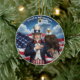 • This classic round ceramic ornament features a striking digital illustration of bold American symbols in vivid red white and blue. It makes a thoughtful, long-lasting keepsake perfect for any patriotic holiday or occasion throughout the year.