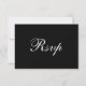These elegant and modern wedding RSVP response cards feature a black and white classic layout and formal calligraphy, and has a scannable QR code so that guests can respond online at your wedding website. The back of the card is solid black, with the word "Rsvp" in white as a decorative element.