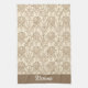 Ein wunderschönes Vintages Damast-Muster in Beige auf einem blassgelben Hintergrund schafft ein elegantes Küchentuch. Personalisieren Sie mit Ihrem Namen in einem dunkelbeigen Band am unteren Rand.