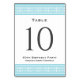 Erstellen Sie personalisierte Tischnummern für Ihre Veranstaltung. Klassische Typografie und eine griechische Schlüsselgrenze verleihen Ihrem Fest zeitlose Eleganz. Das geometrische Design wird von der griechischen und römischen Antike Inspiriert und schafft ein stilvolles, mazesähnliches Muster. Personalisieren Sie die Vorlage mit Tischnummer, Namen und Ereignisdetails. Das Design wird auf beiden Seiten elegant wiederholt. Ideal für ein Party, Mittagessen, Brunch, Geburtstag, Hochzeit, Gala oder anderen besondere Anlass. Druckfarben: blau und weiß, mit dunkelgrauem Schriftzeichen.