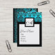CLASSIC BLACK AQUA BLUE DAMASK SQUARE MONOGRAMM VISITENKARTE