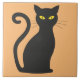 Keramik Kachel (6x6 Zoll) mit klassischer schwarzer Katze auf hellorange.