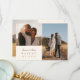 Elegante, flache Dankeschön-Karten verfügen über ein anfängliches Monogramm-Detail mit drei benutzerdefinierten Textfeldern; mit "mit Liebe und Dankbarkeit", einem Textfeld für Ihre benutzerdefinierte Nachricht und Ihren Namen in schwarzer Schrift auf einem Elfenbeinhintergrund. Fügen Sie eine lieblings vertikale oder portraitorientierte Hochzeit hinzu. Personalisieren Sie die Vorderseite mit zwei zusätzlichen Fotos.