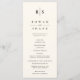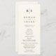 Teilen Sie Ihre Hochzeitszeremonie und Brautparty Details im eleganten Stil mit diesen monogramm Hochzeitsprogrammen in warmen Elfenbeinecru mit Ihren Initialen in traditioneller Serif schwarz Schrift, geteilt durch eine dünne vertikale Linie. Passen Sie die Vorderseite mit Ihren Zeremoniedetails an und fügen Sie Ihre Hochzeitsfeier auf den Rücken.