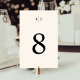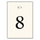 Elegante Hochzeitskarten mit Empfang-Tischnummer in knuspriger Schwarz auf einem warmen elfenbeinfarbenen Hintergrund, ergänzt durch ein einfaches Monogramm in traditioneller Serifenschrift, geteilt durch eine dünne vertikale Linie. Design wiederholt sich auf der Rückseite. Um Ihre Tischnummern zu bestellen, passen Sie Ihr Design an Ihre Wünsche an, beginnen Sie mit Tabelle 1, fügen Sie den Warenkorb hinzu und fügen Sie jede nachfolgende Zahl separat hinzu.