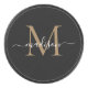 Classic Black Gold Monogram Girly Feminine Script Hockey Puck
