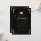 Celebrate a remarkable academic milestone with this classic black and gold graduation invitation, designed with timeless elegance and formal sophistication. Featuring ornate gold script typography, decorative corner accents, and a graduation cap emblem, this invitation makes a striking statement for a high school or college graduate.