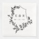 Elegante Hochzeitsnapkins, mit einem schwarzen Schild-Wappen mit schwarzen Blätter, in der Mitte Ihr Monogramm und Ihr Hochzeitsdatum.
