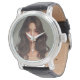 Uhr, Klassische Damenuhr mit schwarzen Lederarmband