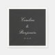 Stilvolle formale Klassische Schrift Elegante Hochzeit Einladung Custom Napkins mit weißem Text auf schwarzem Hintergrund