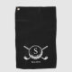This unique classic black and white monogrammed golf towel features crossed golf clubs with ball holding the monogram initial, and the name underneath.