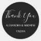 Classic Black & White Script Wedding DANK Runder Aufkleber