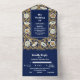 Classic Blue Art Nouveau Wedding All In One Einladung