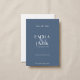 Mit dieser modernen Save the Date-Karte, die durch elegante blaue Farbtöne und einen warmen minimalistischen Ton geprägt ist, verkünden Sie Ihren besonderen Tag im zeitlosen Stil. Raffinierte Serifentypografie und ein romantischer Ampere überlagern Set der Stimmung, während Schrift-Typografie-Akzente ihm zeitgenössischen Flair verleihen. Die gepflegte Gestaltung und die gedämpfte Farbpalette, inspiriert durch sanfte neutrale Farbtöne, sorgen für ein dezent aber raffiniertes Aussehen und sind somit das ideale Save the Date für klassische oder zeitgenössische Hochzeitsthemen. Diese Karte wurde sorgfältig für Paare entworfen, die eine Mischung aus romantischem Serifencharme und raffinierten modernen Details schätzen. Sie vereint in anmutiger Weise die Vorfreude und Freude Ihres Festes.