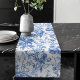 Classic Blue French Toile Roses Floral Table Runne Großer Tischläufer