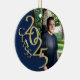 Die Absolventen werden dieses maßgeschneiderte Foto-Ornament in ihren eigenen Schulfarben Liebe Dieses goldblaue und dunkelblaue "Class 2025" Foto-Ornament kann mit einem Namen und Text auf der Rückseite oder fügen Sie ein anderes Foto.