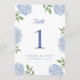 Classic Blue Hydrangea Flower Large Table Number Dankeskarte