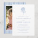 Announce your wedding in style with this classic blue hydrangea wedding invitation, featuring a timeless, refined aesthetic. This elegant wedding invitation features a hand-drawn hydrangea illustration in a soft blue tone, paired with sophisticated serif typography and a script accent for a look that feels both traditional and modern, while the clean layout keeps your wedding details easy to read and beautifully presented. The back of the invitation includes a framed photo area where couples can showcase an engagement photo within a crisp white border set against a blue and white striped background, adding a personal touch while maintaining a polished, heritage-inspired look. Perfect for garden weddings, estate weddings, formal ceremonies, and traditional weddings, this blue hydrangea wedding invitation is ideal for couples drawn to classic, old money, and quiet luxury wedding styles, and can be personalized with your wording and photo to create a meaningful and timeless design that coordinates seamlessly with a botanical or classic wedding theme.