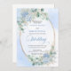 Make your special day unforgettable with this elegant watercolor wedding invitation, thoughtfully designed to shine with Zazzle’s premium print quality. Featuring soft pastel blue hydrangeas, delicate eucalyptus and greenery foliage, and a refined gold glitter oval frame, this invitation blends timeless romance with modern sophistication.