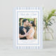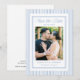 Announce your wedding with refined, timeless style using this Classic Blue Stripe Wedding Save the Date, featuring “Save the Date” in elegant script with your wedding date displayed just below for a polished and traditional introduction. Your engagement photo is framed within a classic double border, creating a clean focal point, while your names and wedding location are arranged beneath in a tailored, well-balanced layout. A soft blue striped background surrounds the design, offering a light and airy feel with a subtle coastal blue tone that evokes relaxed elegance and classic seaside charm. The back of the card features a coordinating design with a QR code and space for your wedding website, making it easy for guests to access additional details, RSVP information, and event updates. Ideal for coastal weddings, summer celebrations, and couples drawn to classic yet approachable stationery, this blue save the date blends structure and softness for a look that feels effortlessly timeless.