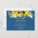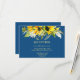 Das Classic Blue Sunflower Empfang Card Design zeichnet sich durch einen phantastischen Kontrast zwischen klassisch blauem Hintergrund und hellgelben Sonnenblumen aus.