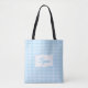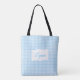 Elevate your everyday style with this chic and timeless Personalized Blue and White Gingham Tote Bag. Featuring a classic checkered pattern and a stylish white center band, this bag is designed to be uniquely yours.