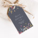 Diese klassisch blauen, blumengeschmückten Brautparty-Tags eignen sich perfekt für einen rustikalen Polterabend. Die gelbe, lila, weiße Blume mit Blattwerk in einer Rose und grünem Aquarell.