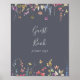 Dieses klassisch blaue, blumengeschmückte Gästeschild eignet sich hervorragend für eine Hochzeit oder ein Brautparty. Die gelbe, lila, weiße Blume mit Blattwerk in einer Rose und grünem Aquarell. Machen Sie die Textzeile am unteren Rand des Zeichens Ihren eigenen, indem Sie das Datum, die Namen der Braut und Bräutigam oder eine kurze Nachricht wie "Danke". Dieses Schild kann eine Hochzeit, jedes Ereignis oder Party ergänzen.