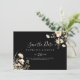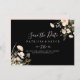 Diese klassische Wildblume in Schwarz horizontale Schwarze Hochzeit speichern das Datum ist perfekt für eine moderne Hochzeit. Das Design präsentiert anmutige und elegante Aquarellfarben, die von Hand in Rosa und Multicolor gehalten und in hübschen Bouquets angeordnet sind.