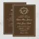Elegant vintage crest monogram dark coffee brown and ivory buttercream classic formal traditional framed wedding invitation with QR code to website for guest information details and RSVP, featuring a classy hand lettered calligraphy script. +++++++++++ Suitable for timeless stylish old money themed weddings.