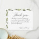 Eine klassische Serifenschrift Kalligrafie unterstreicht diese Hochzeit Dankeschön-Karte. Die Rückseite der Karte weist ein lebendiges, grünes Farnblatt-Muster auf. Das ist eine Dankeschön-Karte ohne Foto.