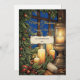 Send a message of warmth and peace this holiday season with this elegant Christmas card. The illustration features a cozy, traditional scene with multiple glowing candles, a classic lantern, and a rich evergreen wreath adorned with red berries and a bow, all set against a deep blue night window. The card includes the greeting "Merry Christmas & A Happy New Year" in beautiful script. A decorative text box on the scroll is set up as an easy-to-use template—simply add your family name or individual name to create a custom greeting for friends and loved ones.