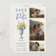 Classic Chalice Vase with Mediterranean Lemons and Flowers 3-Photo Wedding Save the Date Cards with QR Code Back.