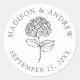 Complete your wedding details with these charcoal gray hydrangea wedding stickers, designed with a neutral and understated look. The design features a hand-drawn hydrangea centered on a white background, surrounded by the couple’s names and wedding date for a clean and balanced presentation. Perfect for sealing envelopes, labeling favor bags and boxes, or using on welcome bags, these stickers work well for formal weddings, modern weddings, and evening weddings.