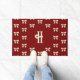 Eine klassische Monogramm-Doormat mit einem eleganten Bogen-Muster auf festlichem rotem Hintergrund. Ideal für den Urlaub.