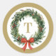 Classic Christmas Wreath Gold Monogram Initial Runder Aufkleber