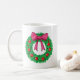 Celebrate the holiday season with this charming Christmas wreath mug! Featuring a bright green wreath decorated with shiny red ornaments and topped with a bold pink bow, this design brings timeless holiday warmth to your morning coffee or cocoa. Perfect for cozy winter mornings, festive kitchen décor, or as a thoughtful Christmas gift for friends, family, or coworkers who love classic holiday style.