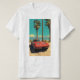 A vibrant, painterly illustration of a classic red Chevrolet Corvette Stingray parked on a sunny beachfront. The car is framed by tall palm trees in the foreground, with a calm turquoise ocean, distant sailboats, and hazy mountains under a bright blue sky in the background, evoking a relaxed, retro coastal vacation vibe.