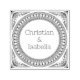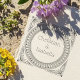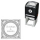 Add a touch of timeless elegance to your belongings with this custom self-inking rubber stamp, featuring a distinctive ribbed circular border and graceful stylized leaf accents around your personalized names. This efficient stamp allows for quick, consistent impressions on cards, books, or small packages, saving you time while maintaining a polished look. It's perfect for personalizing wedding thank you notes, creating custom bookplates, or adding a unique mark to gifts. A durable and practical tool that combines classic design with modern convenience, ideal for any couple or individual seeking sophisticated personalization.